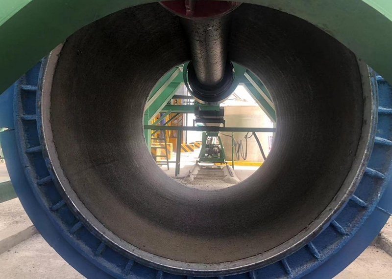 本項目共預(yù)制圓管涵4188節(jié),涵身混凝土設(shè)計標(biāo)號C30,采用先預(yù)制后安裝的施工方法,所預(yù)制的Φ1.5m涵管的管壁厚度為16cm,標(biāo)準(zhǔn)管節(jié)長2m,輔助管節(jié)長0.5m。施工采用干硬性混凝土,使用懸輥機(jī)輥壓離心制管法預(yù)制管節(jié)。