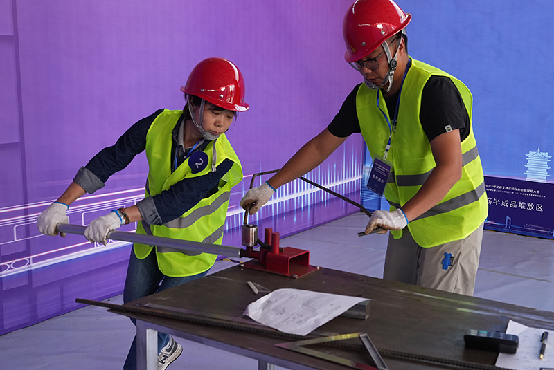 賽場上,王旭東、周蓉兩位選手沉著迎戰(zhàn)、不畏強手,信心十足地快速準確切割鋼筋,沉著地檢測模擬構件的缺陷,全神貫注地使用儀器進行施工放樣,每個項目每個環(huán)節(jié)均都能從容面對,展示了交建人扎實的技能功底和良好的心理素質(zhì)。