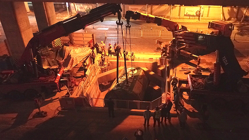 合肥軌道交通建設(shè)首次應(yīng)用:低凈空折臂吊車接力吊裝技術(shù)