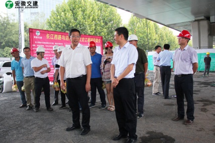 7月18日,安徽省交通控股集團(tuán)總經(jīng)理錢東升、建管處處長蘇新國、項目辦主任鄒正明等領(lǐng)導(dǎo)一行蒞臨安徽交建滁淮高速定長段路面一標(biāo)項目部進(jìn)行檢查指導(dǎo)。