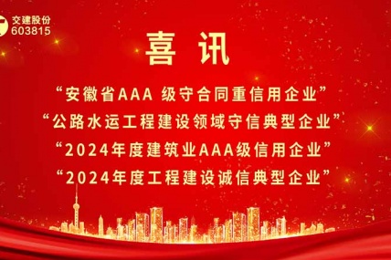 近日,安徽省交通建設(shè)股份有限公司憑借誠信經(jīng)營和良好的社會信譽(yù)連獲“安徽省AAA 級守合同重信用企業(yè)”、“2024年公路水運(yùn)工程建設(shè)領(lǐng)域守信典型企業(yè)”、“2024...