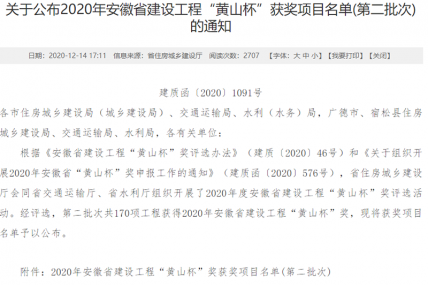 近日,2020年安徽省建設(shè)工程“黃山杯”獎評選結(jié)果揭曉,由安徽省交通建設(shè)股份有限公司(以下簡稱安徽交建)施工建設(shè)的全椒縣城東片區(qū)一期道路工程、揚(yáng)州至績溪高速公路...