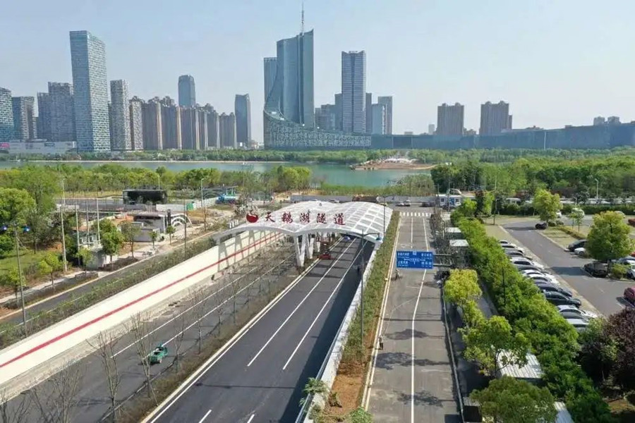 由于隧道位于合肥市網(wǎng)紅景點(diǎn)天鵝湖公園內(nèi),在工程建設(shè)期間,充分考慮了路景融合、與自然和諧統(tǒng)一。