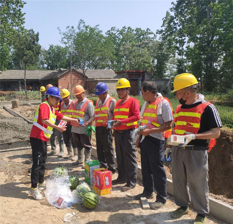 施工加速度的背后是汗水。在五一期間,界首市氣溫連續(xù)一周高達(dá)36℃,項(xiàng)目部完善高溫作業(yè)應(yīng)急處理預(yù)案,合理安排作息時(shí)間,減少了白天室外作業(yè)時(shí)間,披星戴月、節(jié)假無(wú)休的搶工模式也成了家常便飯?!翱嗍强嗔它c(diǎn),但也是鍛煉的好機(jī)會(huì),雖然任務(wù)重,但是大家戰(zhàn)斗在一起,共同為榮譽(yù)而戰(zhàn),多苦也是值得的。”項(xiàng)目部管理人員這樣說(shuō)道。為保障每一位工人的人身安全,項(xiàng)目部還積極向作業(yè)人員宣傳高溫期間防暑降溫基本常識(shí)和救援知識(shí),增強(qiáng)高溫天氣預(yù)防中暑的安全意識(shí)和急救能力,并為各工區(qū)施工人員發(fā)放防暑降溫物品。