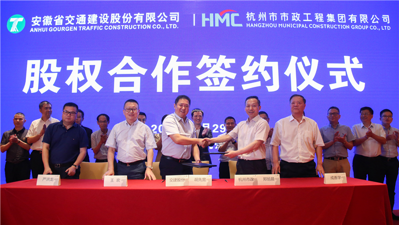 6月29日下午,安徽省交通建設(shè)股份有限公司(以下簡(jiǎn)稱交建股份)與杭州市市政工程集團(tuán)有限公司(以下簡(jiǎn)稱杭州市政)簽署購(gòu)買資產(chǎn)意向協(xié)議,交建股份擬購(gòu)買杭州市政70.83%的股權(quán)。此項(xiàng)收購(gòu)?fù)瓿珊?,交建股份將擁有公路、市政雙特級(jí)資質(zhì),圍繞拓展全國(guó)業(yè)務(wù)戰(zhàn)略,進(jìn)一步拓展長(zhǎng)三角市場(chǎng)。交建股份實(shí)控人、祥源控股集團(tuán)有限責(zé)任公司董事長(zhǎng)俞發(fā)祥、杭州市城鄉(xiāng)建委副主任楊鐵定、杭州市城投集團(tuán)副總經(jīng)理余敏紅出席簽約儀式。