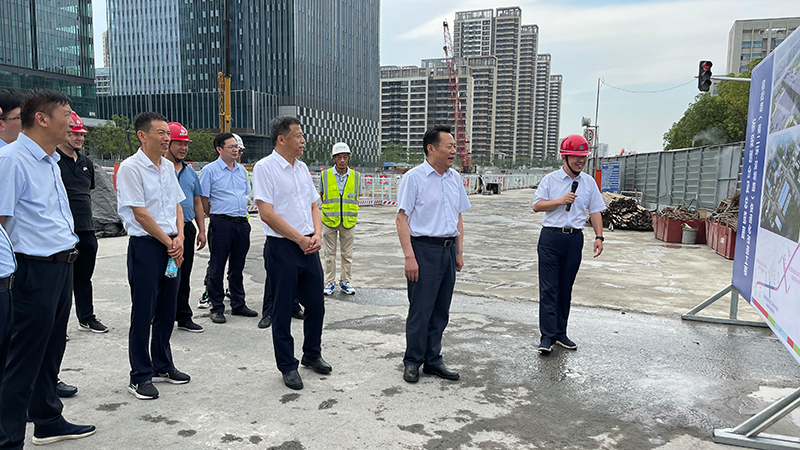 在宿松路下穿繁華大道施工現(xiàn)場,虞愛華聽取了項目概況、施工進度等方面的介紹,對2標段能夠在188天完成花園大道跨線橋建成通車給予了高度認可。虞愛華對大建設工作者們在炎熱天氣下的辛勤付出表示真摯的慰問和感謝,并叮囑一線建設工人要注意勞逸結合和防暑降溫。他強調,在統(tǒng)籌發(fā)展的同時,要高度重視安全管理,既要守住“看不見”的防疫安全,也要守住“看得見”的生產(chǎn)安全,堅決防范各類重大事故的發(fā)生。