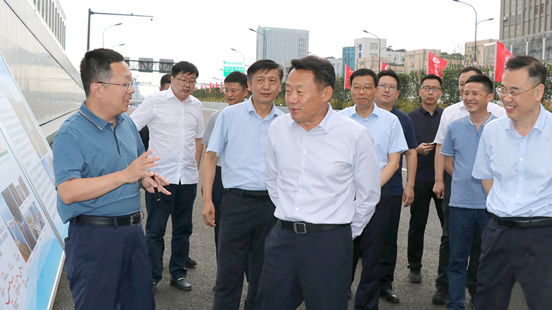 6 月29 日下午,安徽省委常委、合肥市委書記虞愛華一行調(diào)研由安徽交建承建的宿松路快速化改造 2 標(biāo)段項(xiàng)目建設(shè)。市城鄉(xiāng)建設(shè)局、市建投集團(tuán)、經(jīng)開區(qū)管委會(huì)、市交通局、市重點(diǎn)局、市城投公司、安徽交建等相關(guān)單位負(fù)責(zé)人陪同。