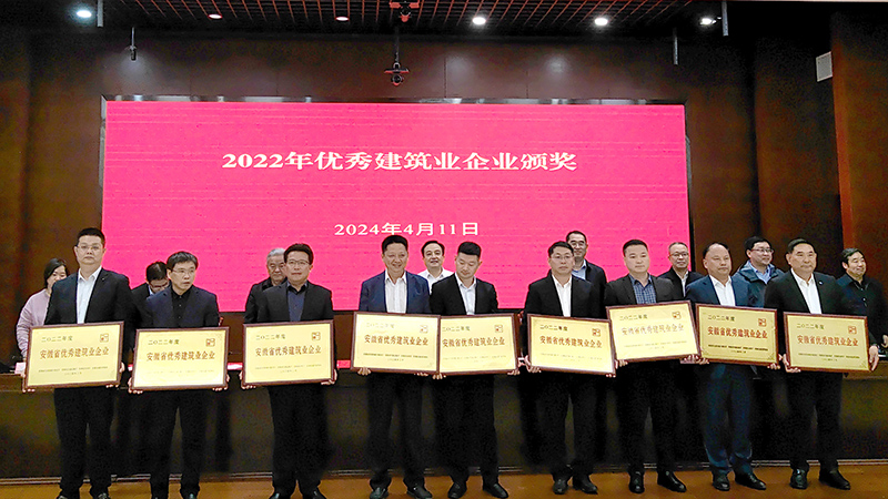 會議傳達(dá)學(xué)習(xí)了全國住房城鄉(xiāng)建設(shè)工作會議、全省創(chuàng)建一流營商環(huán)境暨推進(jìn)民營經(jīng)濟(jì)高質(zhì)量發(fā)展大會有關(guān)精神,分析研判安徽省建筑業(yè)發(fā)展形勢和應(yīng)對策略,并通報表彰了“2022年度安徽省優(yōu)秀建筑業(yè)企業(yè)”、“2022年度安徽省建筑業(yè)龍頭骨干企業(yè)”。會議現(xiàn)場傳來喜訊,安徽交建獲評“安徽省優(yōu)秀建筑業(yè)企業(yè)(綜合基礎(chǔ)設(shè)施總承包類)”、“安徽省建筑業(yè)龍頭企業(yè)”榮譽(yù),常務(wù)副總裁兼總工程師儲根法參會并上臺領(lǐng)獎。