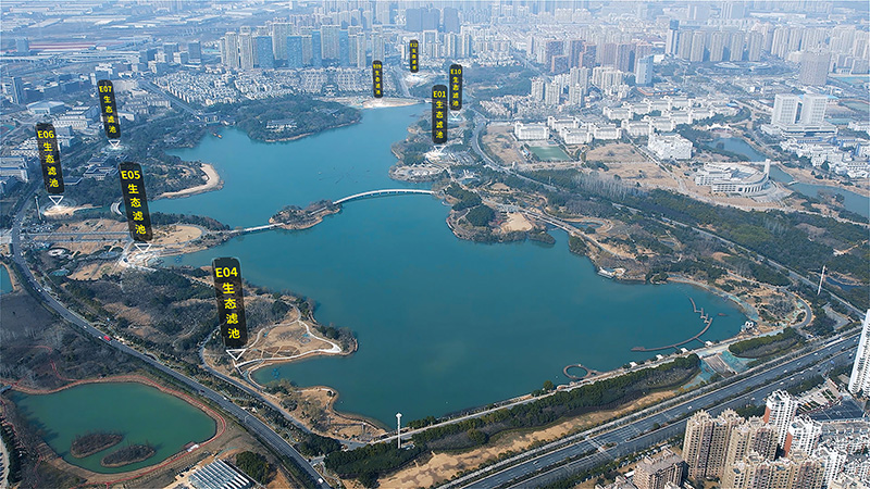 王建溝上游生態(tài)修復(fù)工程現(xiàn)場生態(tài)濾池布局圖(翡翠湖風(fēng)景區(qū)內(nèi))