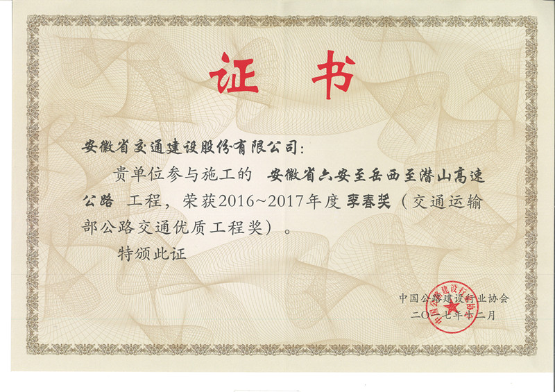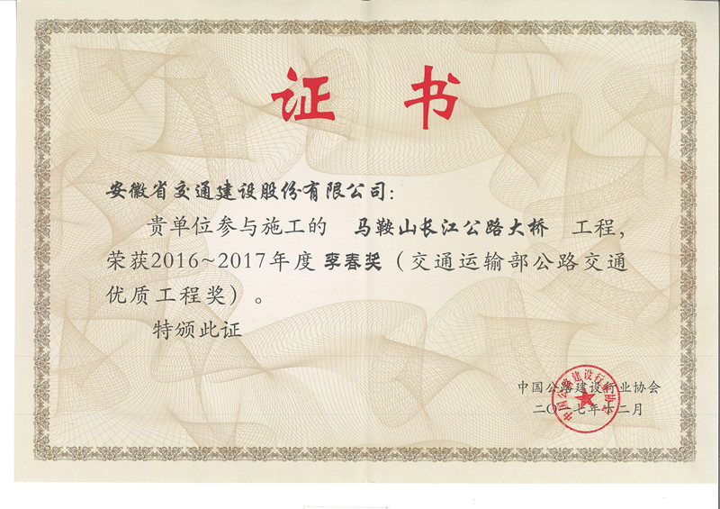 全國公路優(yōu)質(zhì)工程獎