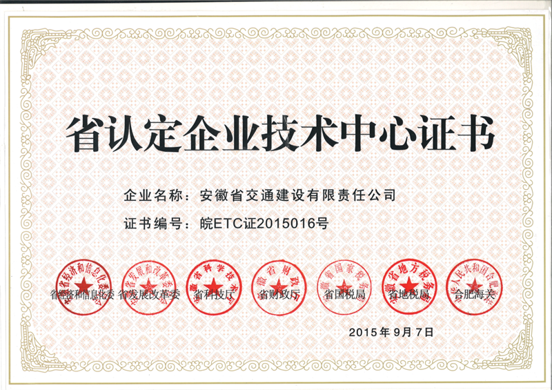 省認定企業(yè)技術中心證書
